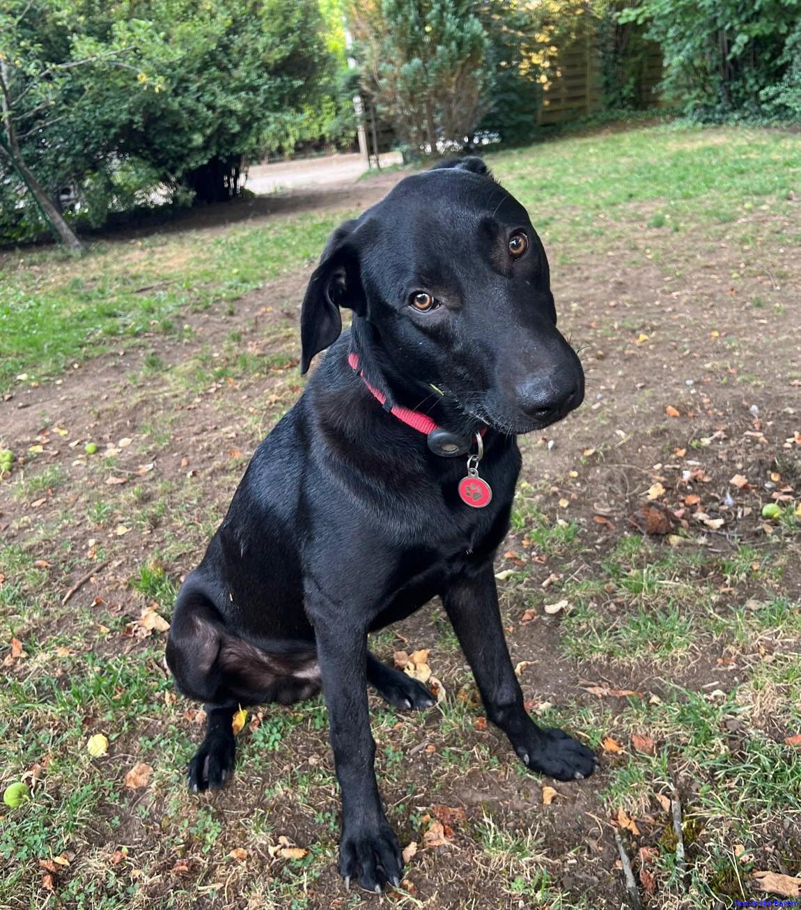 Da Bandit sich außerhalb seines vertrauten Umfelds noch unsicher fühlt, wäre ein sicher eingezäunter Garten ideal, damit er frei und unbeschwert toben kann.